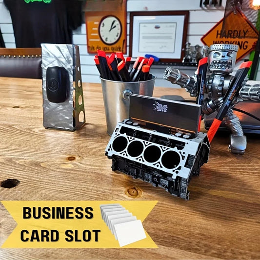 Engine Block Desk Organizer - Business Card & Pen Holder