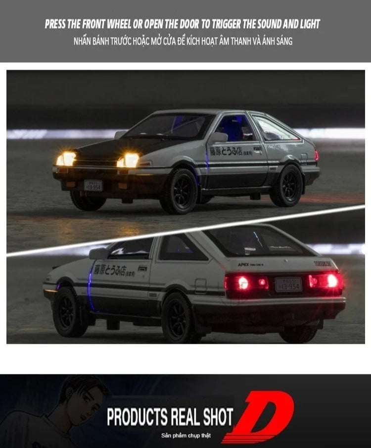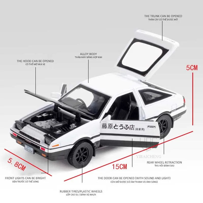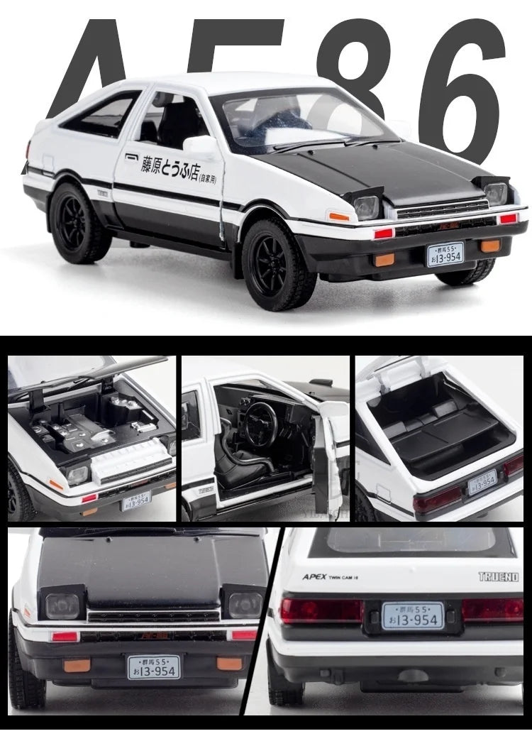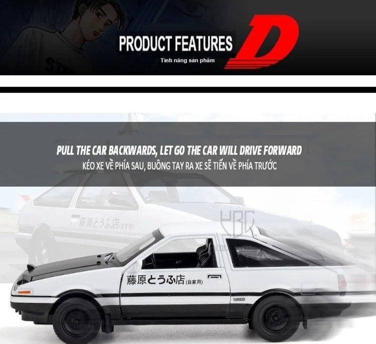 Capture the spirit of a true classic with this 1/32 scale INITIAL D AE86 alloy car model. Affordable with lots of working functions, it’s perfect for fans who want a stylish collectible that stands out on any shelf, yet is still playable for younger fans. Its detailed and functional design brings the iconic AE86 to life, making it a playful addition to your collection or a fun gift for car enthusiasts.