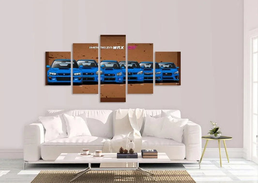 5 Piece Subaru WRX STI canvas wall art - brown background