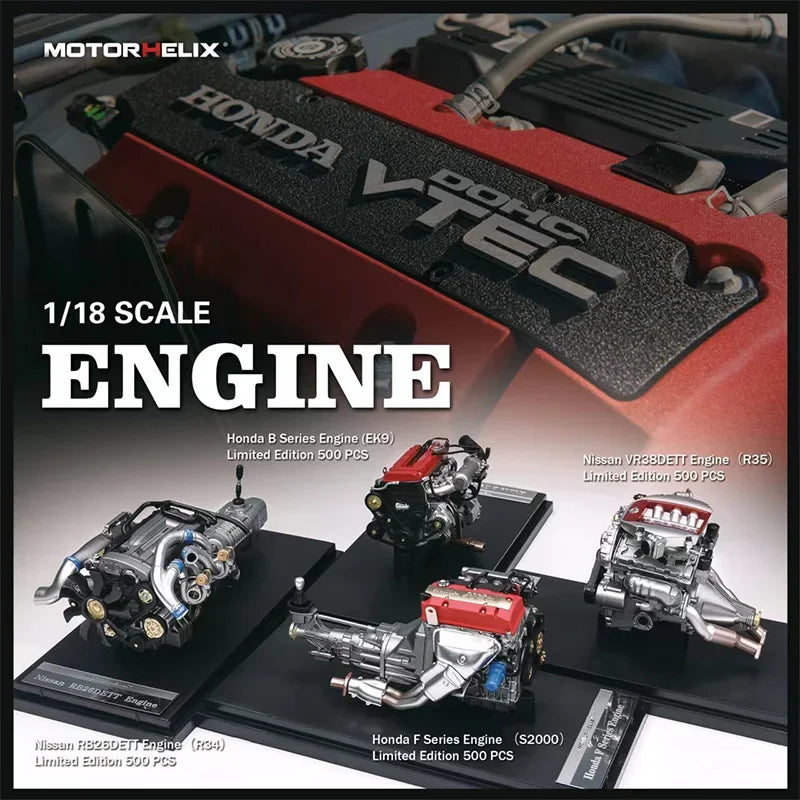 Rev up your collection with these 1/18 scale Honda and Nissan Engine Models. Perfect for JDM enthusiasts, these models boast authentic details for each type of engine. Every JDM gearhead will appreciate these! Take your pick from the Honda K-series, B-series, or F20C. We've recently added Mitsubishi's famed Evo 4G63 or if you're a Nissan Fan go with the VR38 or legendary RB26.