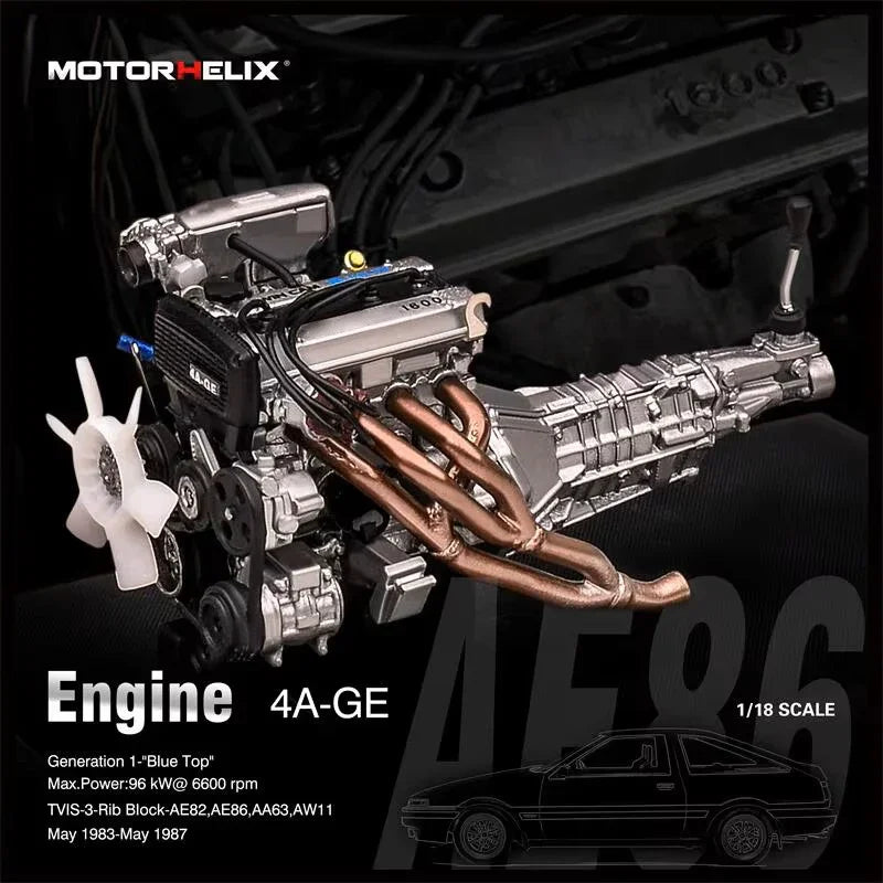 Experience the precision and craftsmanship of our 1:18 sized R34, R35, S2000, and EK9 engine models. This model accurately showcases the iconic engines of the GTR, S2K, and Type R Civic providing a realistic and detailed representation for enthusiasts and collectors alike. We've also now added the legendary 4AGE from the AE86 to the lineup too!